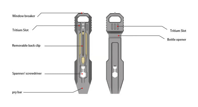 The pry bar weighs only 61g, so light that it seems not to feel its existence.Whether it is hung on the key chain, or in a pocket or bag, there is no burden,and all this is thanks to the perfect combination of lightweight material and compact design of titanium.The titanium material is lightweight, and the compact design allows this tool to achieve optimal portability while maintaining its rich functionality.This is exactly the perfect combination of EDC.